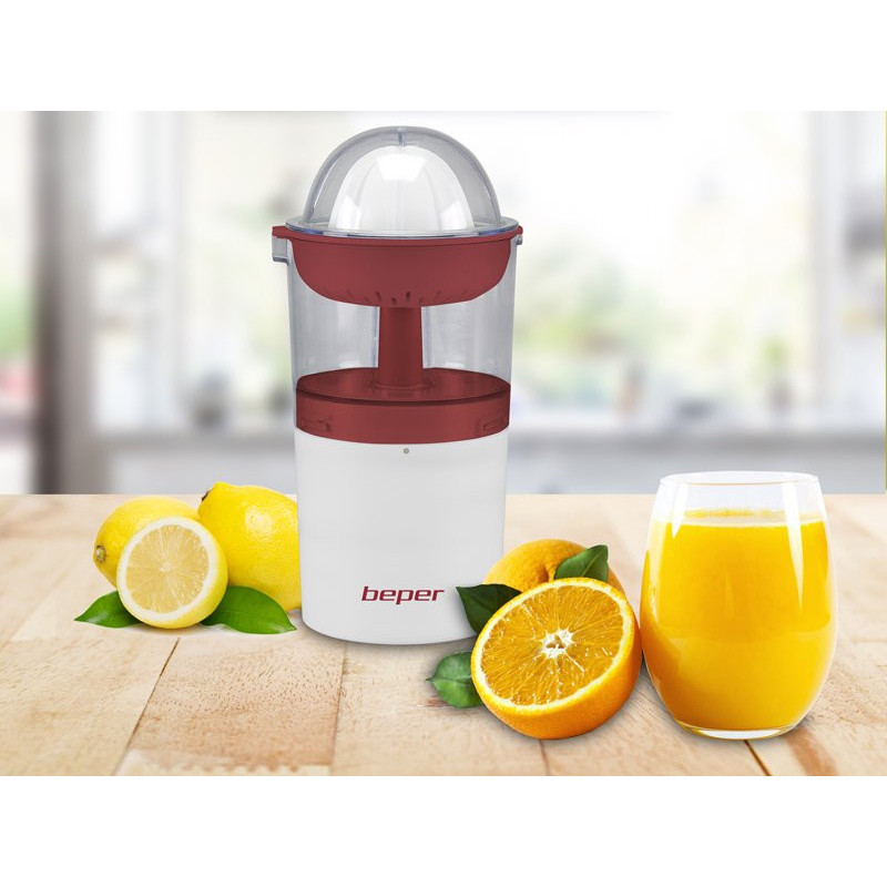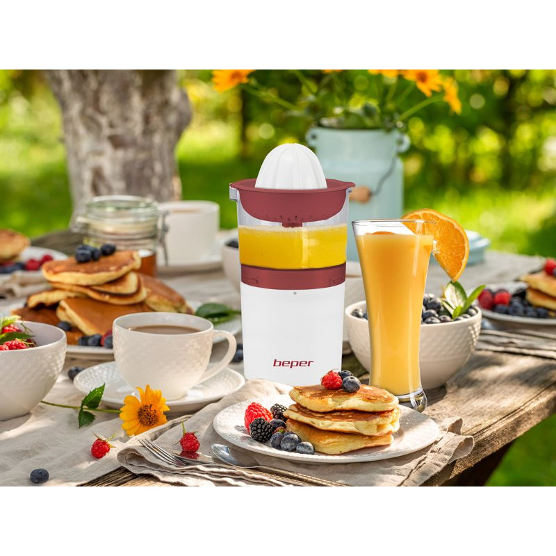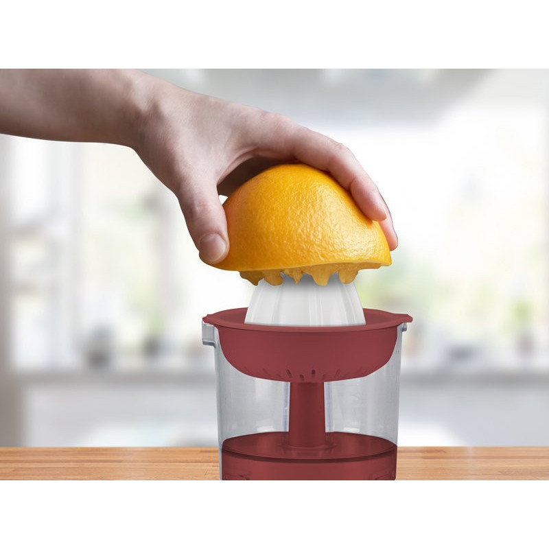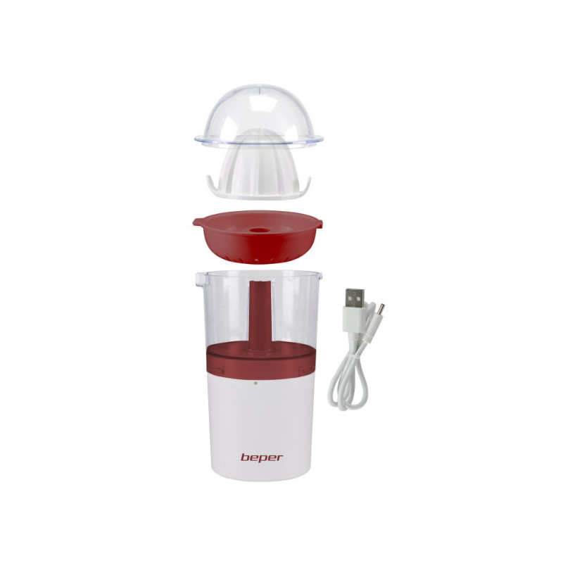 Practical rechargeable citrus juicer, allows you to easily squeeze citrus fruits without the encumbrance yourself of the cable. Can be used anywhere, at the table and also outdoors. The large 250 ml glass collects the juice of two oranges. The powerful lithium battery, rechargeable using the included USB cable, gives the product an autonomy of up to 80 minutes. Also included is a dust lid to keep the juice always fresh.
