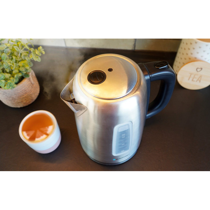 The kettle is easy to use thanks to the button that automatically opens the lid and the 360° rotating base with a flat bottom, which allows you to place the kettle in any position.