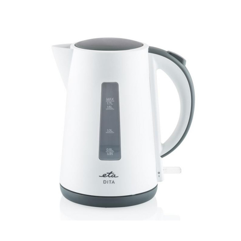 The ETA Dita kettle stands out forits functionality and practical design.It is easy to operate, andthe lid opening is located on the handle.The water markshows when the kettle is full, and thanks to the light indicator you can see whether it is on or off.As soon as the kettle reaches boiling temperature,it automatically switches off.