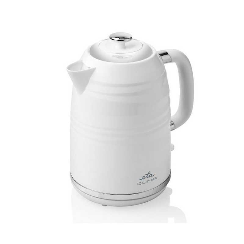 The elegantlydesignedETA Duna kettle will fit into any kitchen.It can prepare up to1.7 liters of waterat a time, and fast preparation is guaranteed by the highpower of the kettle,up to 2200W.When the boiling temperature is reached, the kettleautomatically switches off.
