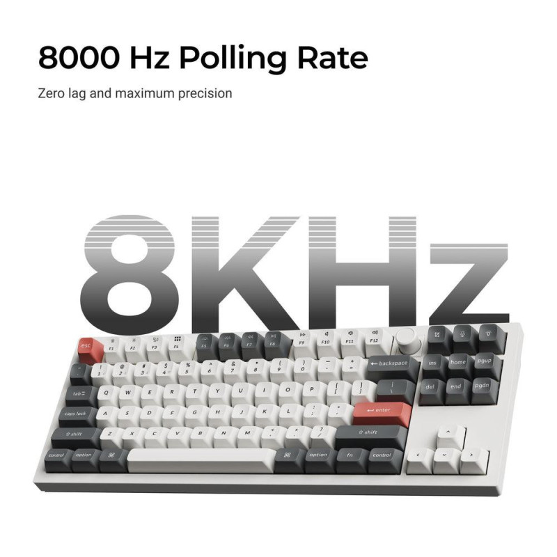 Meet the Keychron Q3 Ultra 8K, a next-generation 80% TKL layout wireless custom mechanical keyboard engineered for unparalleled performance. Featuring a sleek all-metal build, it supports 2.4 GHz, Bluetooth 5.3, and wired connections. Powered by ZMK firmware, it enables an 8K polling rate in wireless mode while delivering up to 660 hours of battery life. Enhanced with multiple layers of acoustic foam, it delivers a refined typing experience with premium sound and complete customization.