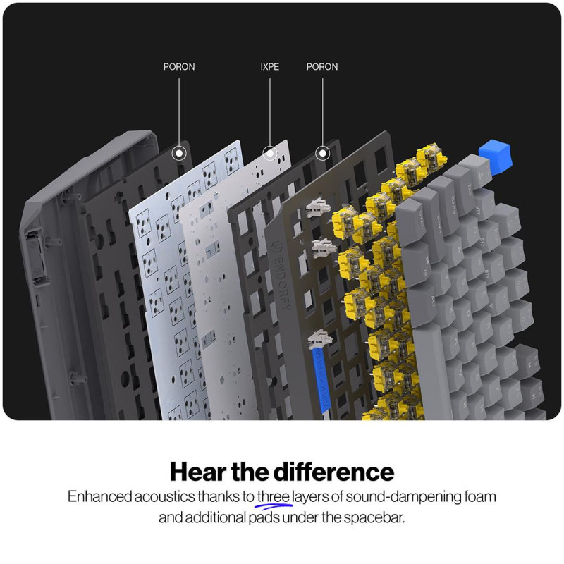 The Thock V2 Wireless features custom linear switches co-developed with Gateron — exclusive ENDORFY Yellow, first introduced in our flagship Celeris 1800.