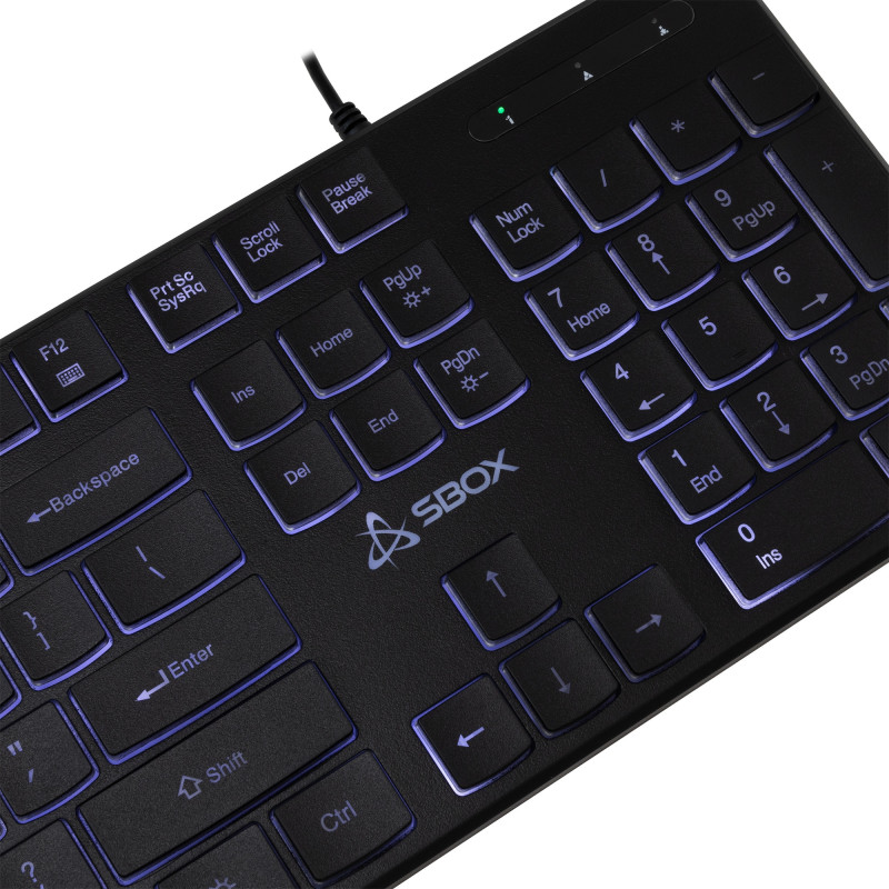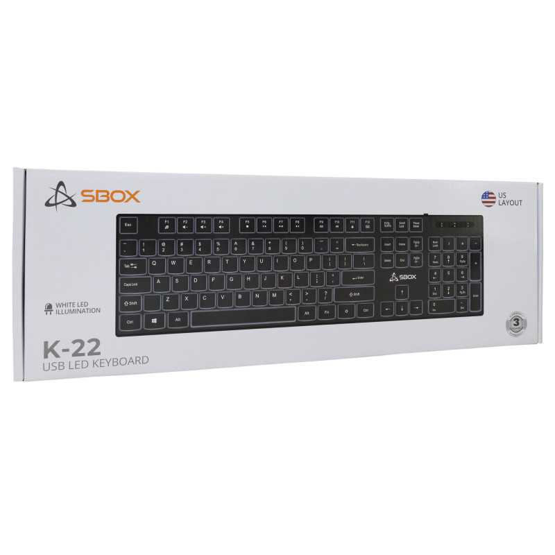 The SBOX office keyboard combines durability with style, featuring a full layout, membrane switches, and white LED illumination.