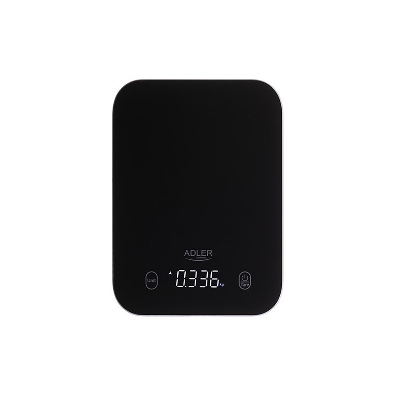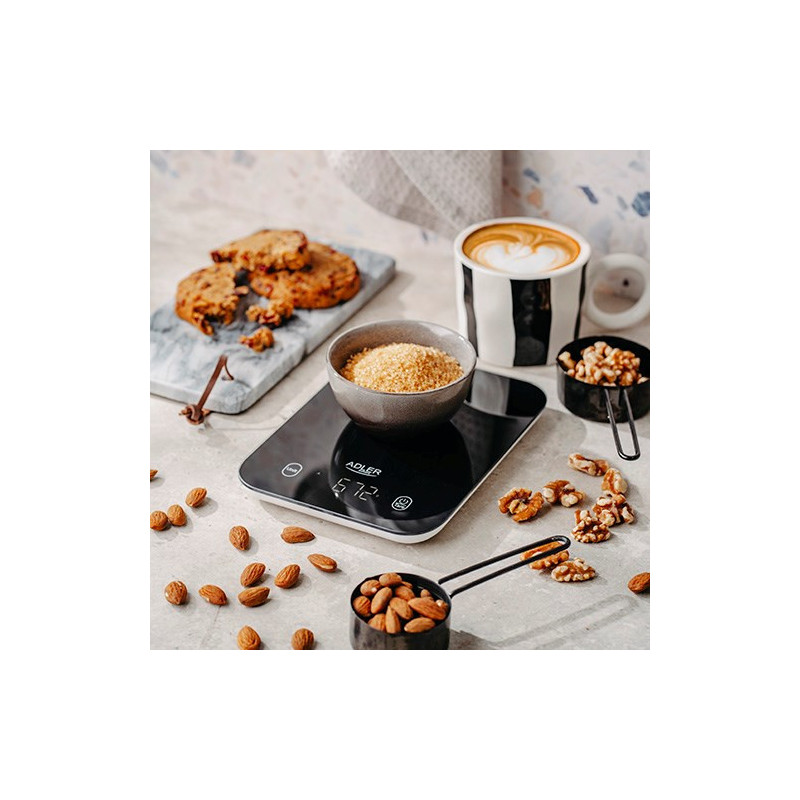 The ADLER AD 3183b kitchen scale has a maximum weight capacity of up to 5 kg and measures with an accuracy of up to 1 g. Its LCD display, automatic shut-off and zero weight function ensure convenient use, and two CR 2032 batteries ensure long-lasting operation.