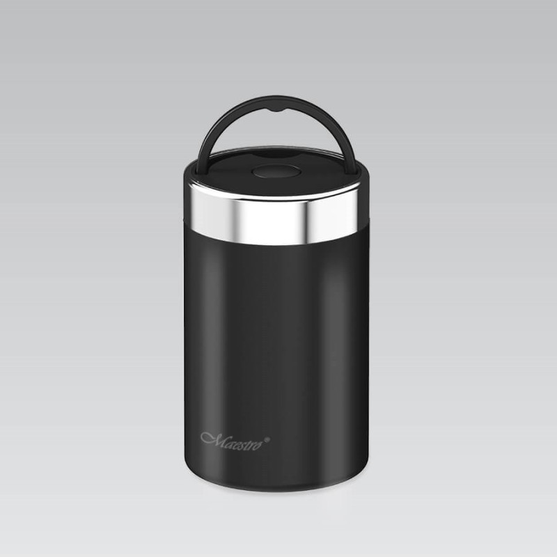 The Maestro MR-1649-50-BLACK food thermos has a capacity of 500 ml and is made of stainless steel. It is thermally insulated, airtight and easy to clean.