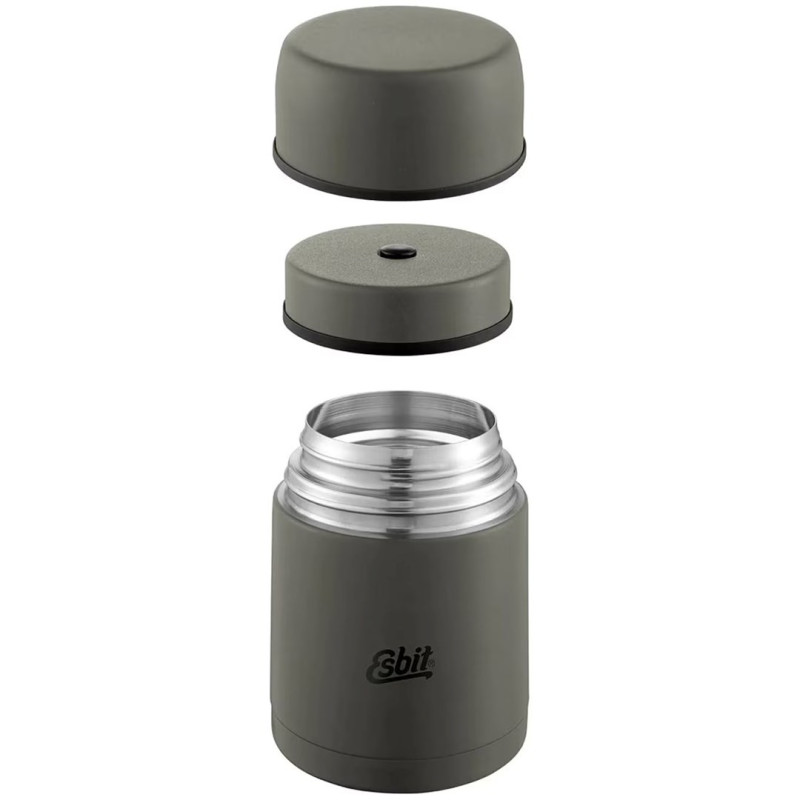 The ESBIT food container has a capacity of 1 liter and is made of stainless steel with double wall insulation. It is designed to keep food hot or cold, its diameter is 10.8 cm and its height is 200 mm.