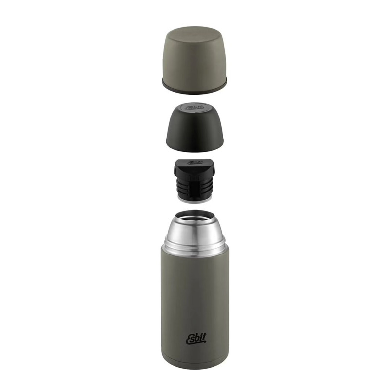 The Thermos ESBIT vacuum bottle has a capacity of 750ml and is made of stainless steel with double-wall insulation. It is designed to keep drinks warm and is suitable for camping, everyday use, sports activities and travel.