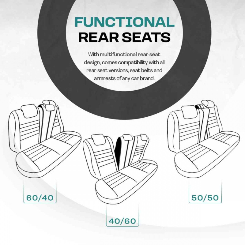 The covers have zippers in the rear seats, making them suitable for most seats available on the market (non-split, right- and left-sided split seats). The backrests can be easily folded down to increase cargo space.