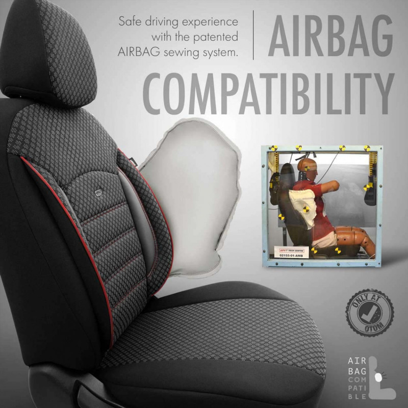 The covers come standard with certified AIRBAG stitching, making them suitable for cars with both side airbags and standard seats. Thanks to the special stitching, they completely cover the seats without interfering with the AIRBAGs.