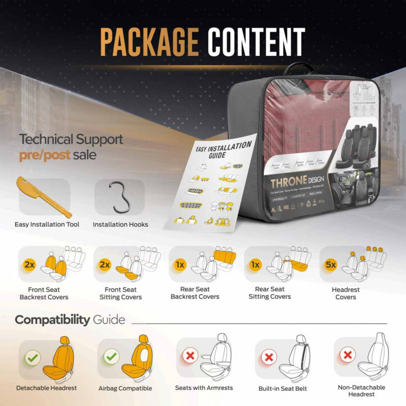 The covers cover the entire seat, providing excellent protection against dirt, being durable and easy to clean, and thanks to their fashionable patterns, they refresh the interior and improve its aesthetics.