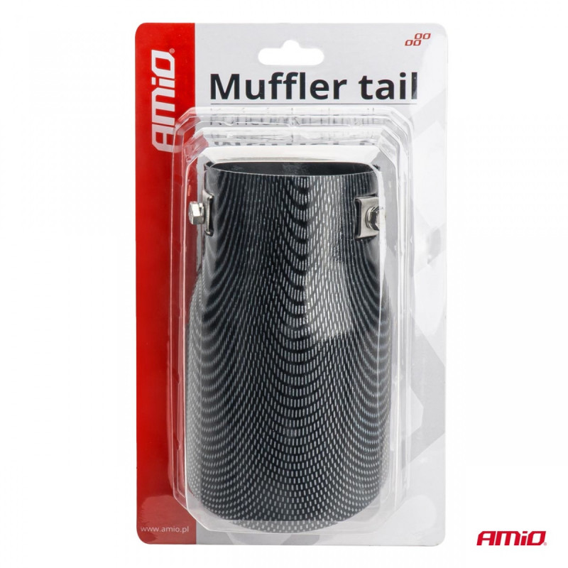 Stainless steel muffler tip with carbon-colored paint.
