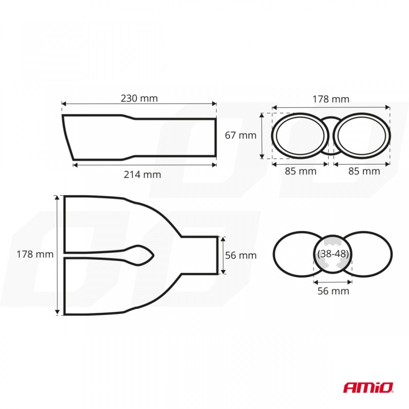 Quick and easy installation by tightening special clamps (after driving 500-1000km, please check the tightness of the screws). The end can also be permanently mounted by welding.