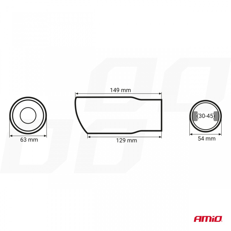 Muffler tip, chrome-plated, acid-resistant stainless steel, model MT011.