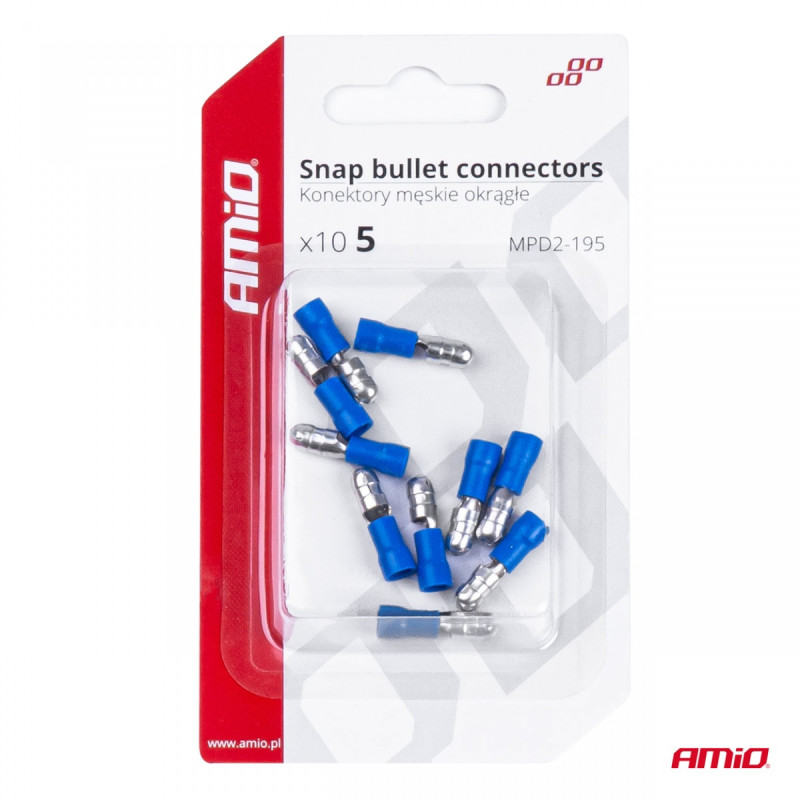 MALE TUBULAR CONNECTOR INSULATED BLUE 10PCS 5mm 1.5-.25mm2 15A