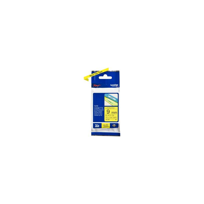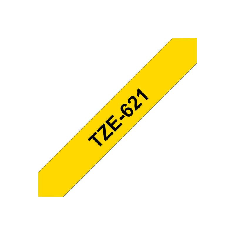 Brother TZe-621 labelling tape features black text on a yellow background for easy reading. The laminated coating provides resistance to water, stains and fading, making it suitable for a variety of environments.