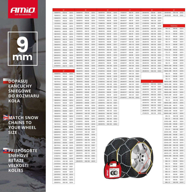 Łańcuchy śniegowe Ö-Norm 9mm + BAG KNS-110 AMIO-02320