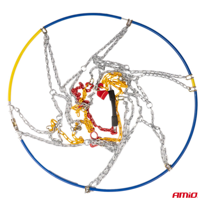 The asymmetric, diamond-shaped chain pattern protects the vehicle from slipping, especially when turning. Quick installation without the need to drive over the vehicle.