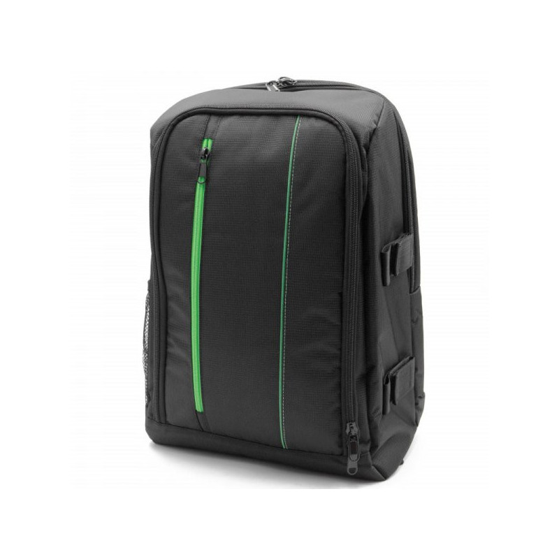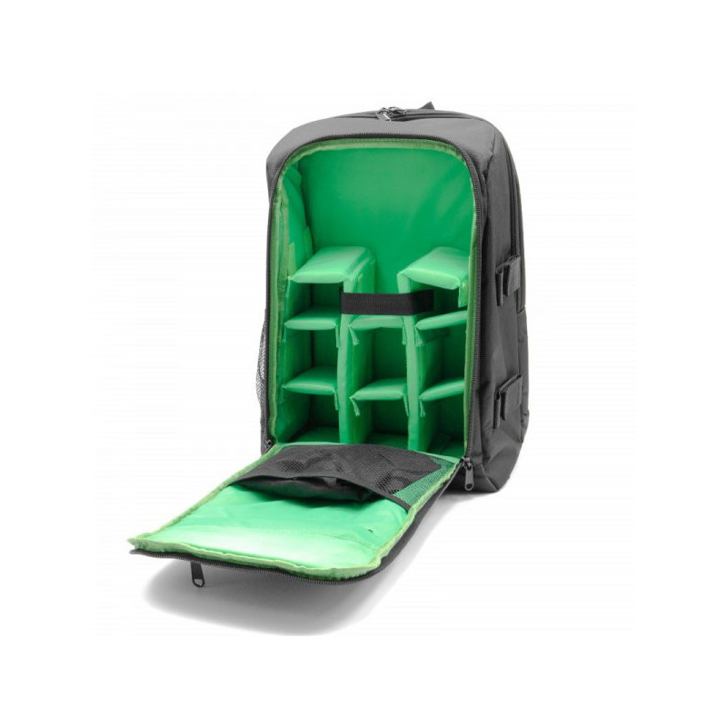 Large, waterproof camera backpack made of nylon, black and green, for SLR cameras
