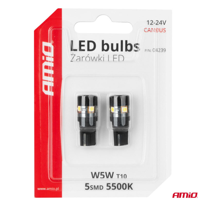 Bring new quality lighting to your vehicle with the CANBUS T10 W5W 5SMD 3030 White LED bulb! This modern LED bulb combines high light output, energy efficiency, and reliability. Designed with the most demanding users in mind, it's ideal for both passenger cars and trucks.