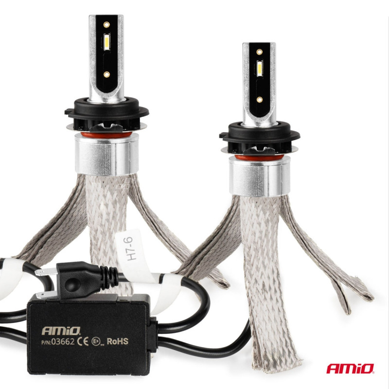 The H7 LED bulb set is a new generation product with increased power and a color temperature of 6000K.