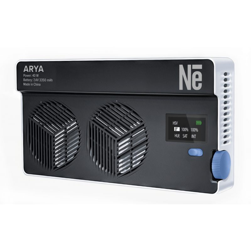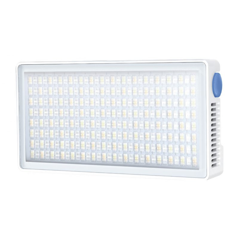 Compact RGB LED lamp with a maximum power of 40 W and a light intensity of up to 16,800 lux. Offers three operating modes, high CRI and TLCI ratings, integrated battery, as well as a silicone diffuser and cold shoe adapter.
