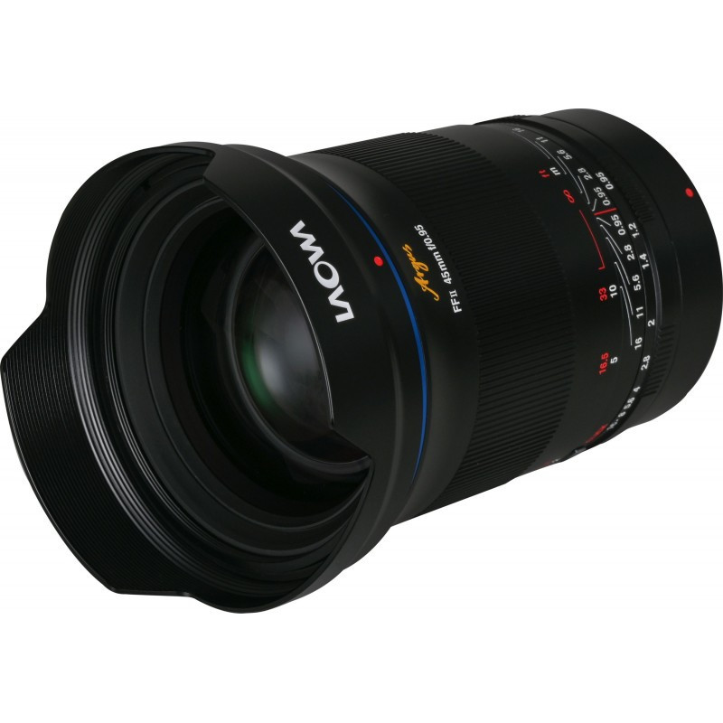 A full-frame 45mm prime lens with a fast f/0.95 aperture. It features internal focusing, a 72mm filter thread, and a 15-blade aperture for smooth bokeh.