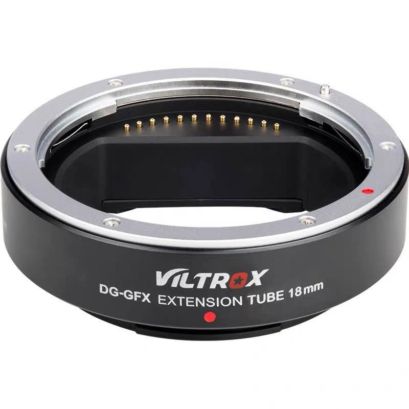The Viltrox DG-GFX 18mm Extension Tube is designed for Fujifilm G-mount cameras and allows for closer focusing for macro photography. It features electronic contacts for autofocus, TTL metering, and autoexposure functions.