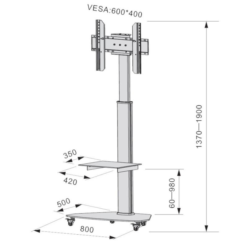 Techly Floor Stand with Shelf Trolley TV LCD/LED/Plasma 37-70" Silver