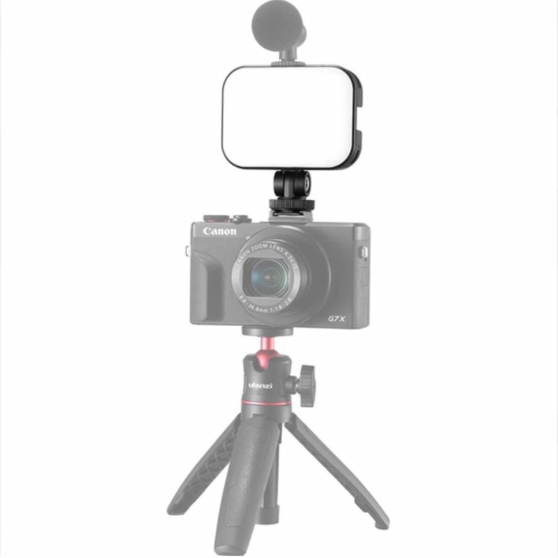 The ULANZI VIJIM VL100C LED light features adjustable color temperature from 2500K to 6500K and a built-in 2000mAh rechargeable battery. It features 100 LEDs, USB charging, and the ability to connect multiple lights together.