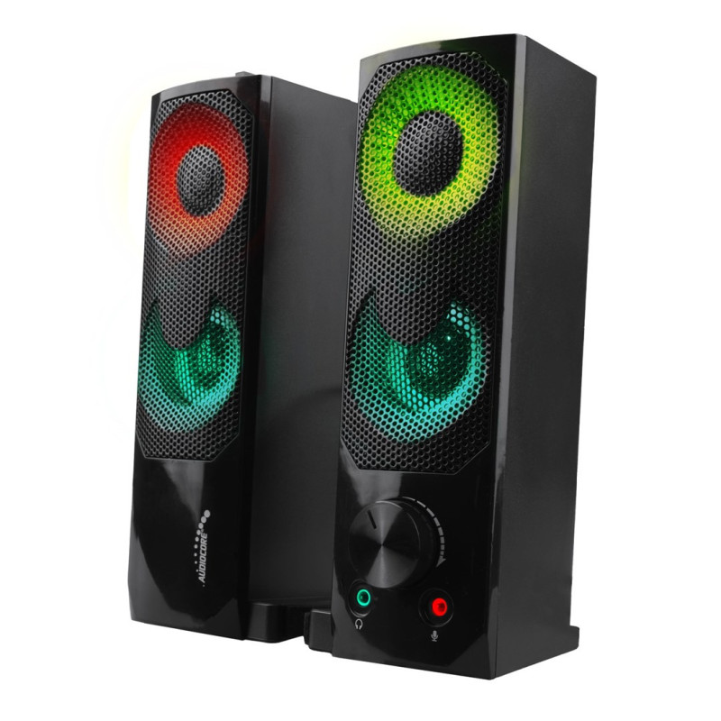 2 in 1 PC Speaker Soundbar Computer RGB LED Backlight Stereo Gaming USB 2 x 3W AUX 3.5 mm
