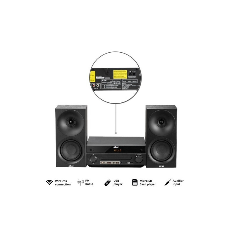 AKAI AM-301B System 40W (2x20W) CD MP3 BT USB FM 40 presets AUX RCA, black