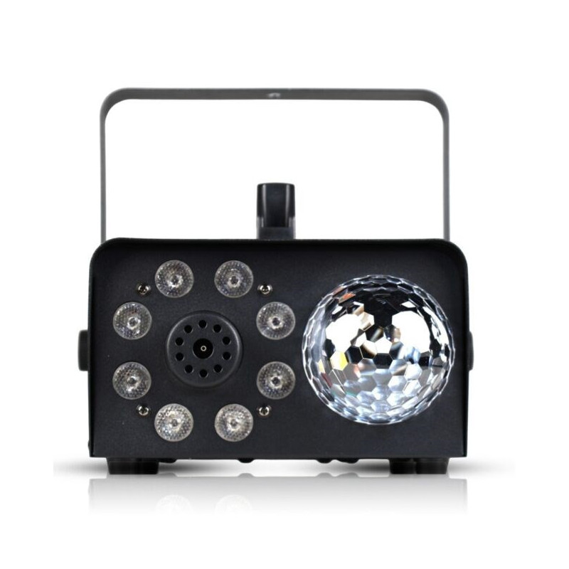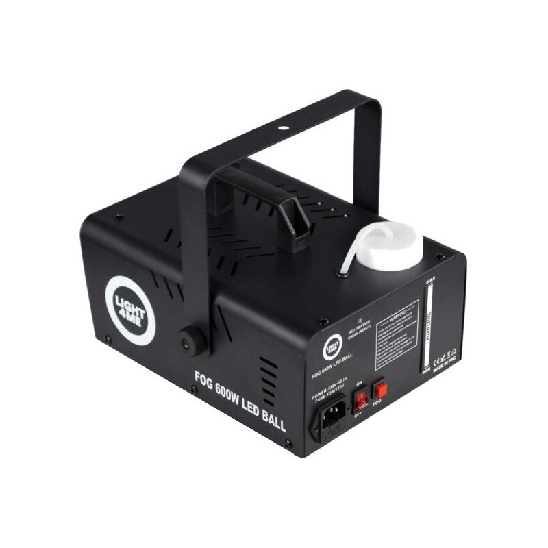 LIGHT4ME Fog 600W LED Ball is a smoke and fog machine that generates fog at a speed of 50 m³/min. It has a 0.25 L liquid capacity and comes with a remote control.