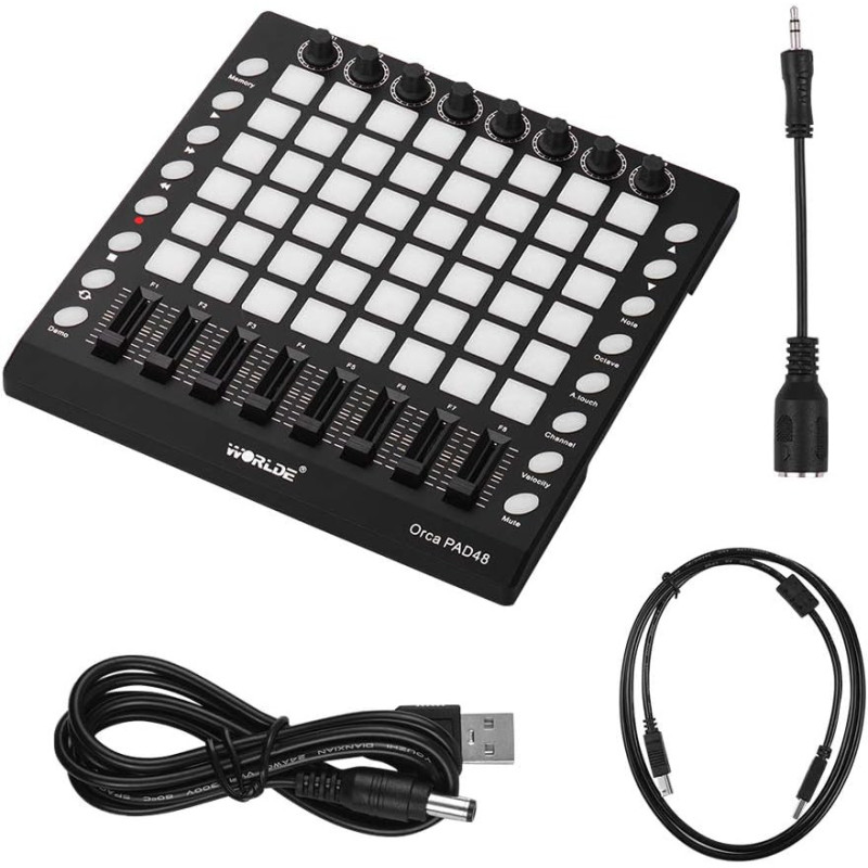 The WORLDE PAD48 MIDI Controller is a powerful beat-making and live performance controller featuring 48 RGB velocity-sensitive pads, assignable knobs and sliders, and full MIDI mapping support for music production and DJ performances.