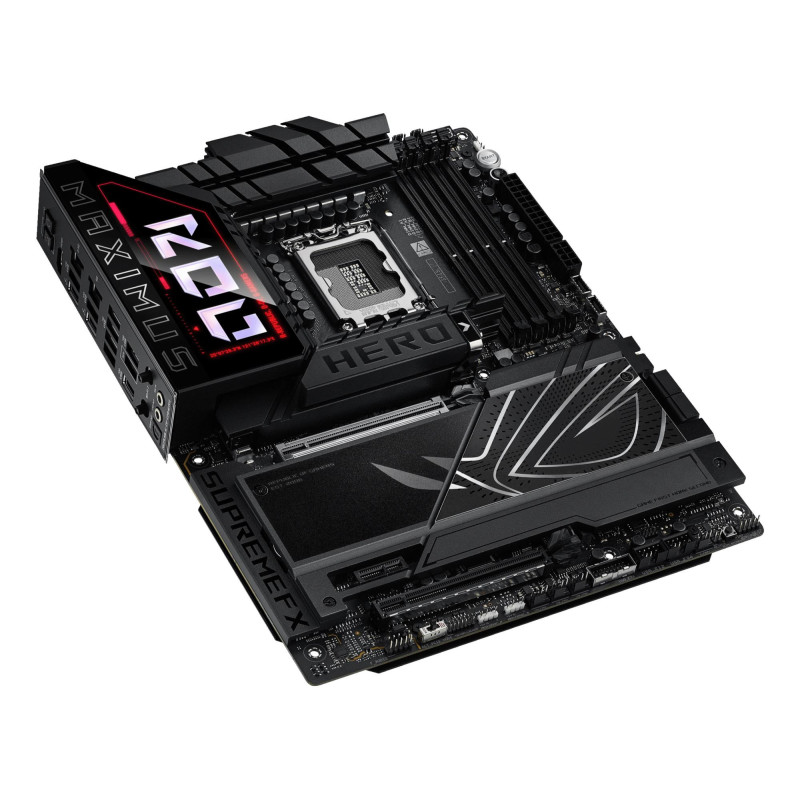 | Summary | ASUS ROG MAXIMUS Z890 HERO. Processor manufacturer: Intel, Processor socket: LGA 1851 (Socket V1), Compatible processor series: Intel Core Ultra (Series 2). Supported memory types: DDR5-SDRAM, Maximum internal memory: 192 GB, Memory slots type: DIMM. Supported storage drive interfaces: M.2, SATA III, Supported storage drive types: HDD & SSD, RAID levels: 0, 1, 5. USB connector type: USB Type-A, USB Type-C. Ethernet interface type: 2.5 Gigabit Ethernet, 5 Gigabit Ethernet, Top Wi-Fi standard: Wi-Fi 7 (802.11be) |