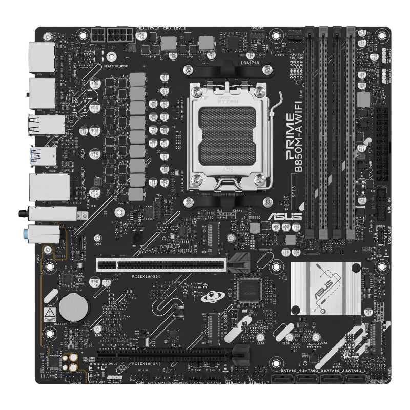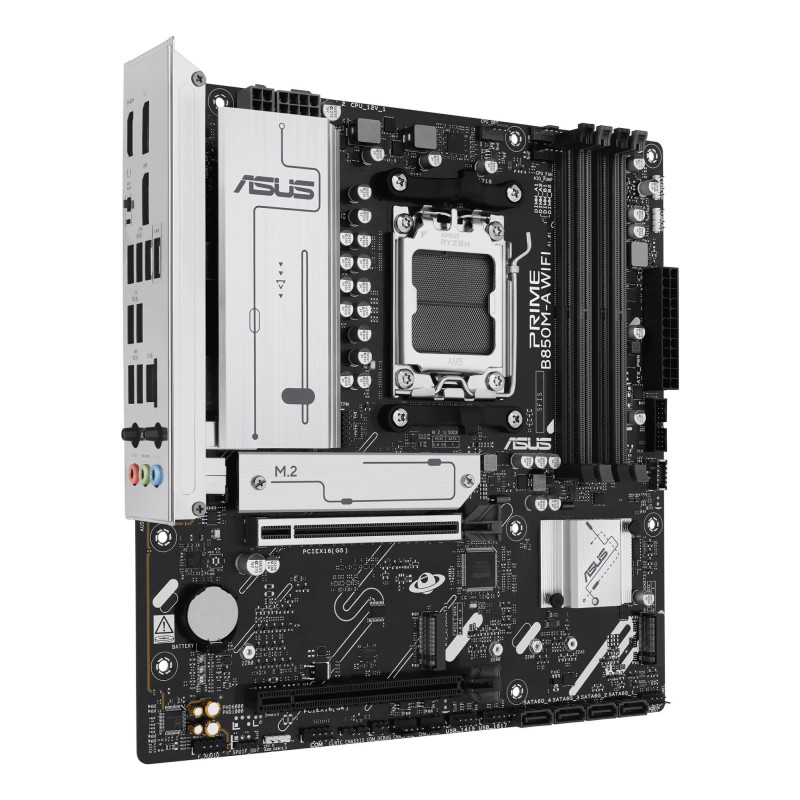 ASUS Prime series motherboards are expertly engineered to unleash the full potential of AMD Ryzen™ 9000 series processors. The PRIME B850M-A WIFI motherboard provides users and PC DIY builders with a range of performance optimizations via intuitive software and firmware features. It's designed to be Advanced AI PC-ready, offering the power and connectivity needed for demanding AI applications.
