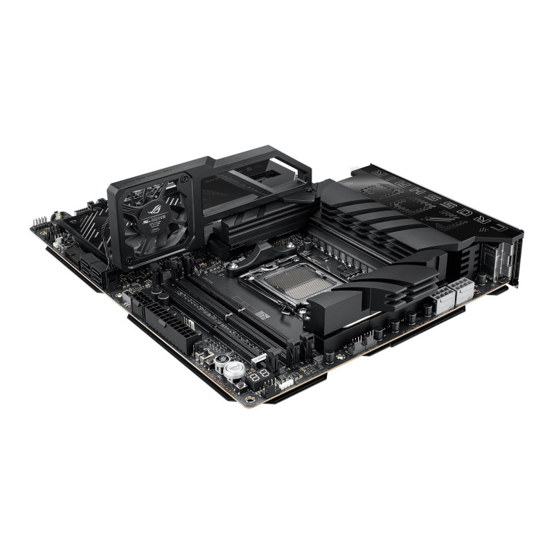 The ASUS ROG CROSSHAIR X870E AM5 DDR5 5x M.2 Wi-Fi 7 motherboard supports AMD Ryzen 7000, 8000, and 9000 series processors with AM5 socket. It offers dual-channel DDR5 memory support, five M.2 slots, and Wi-Fi 7 connectivity.