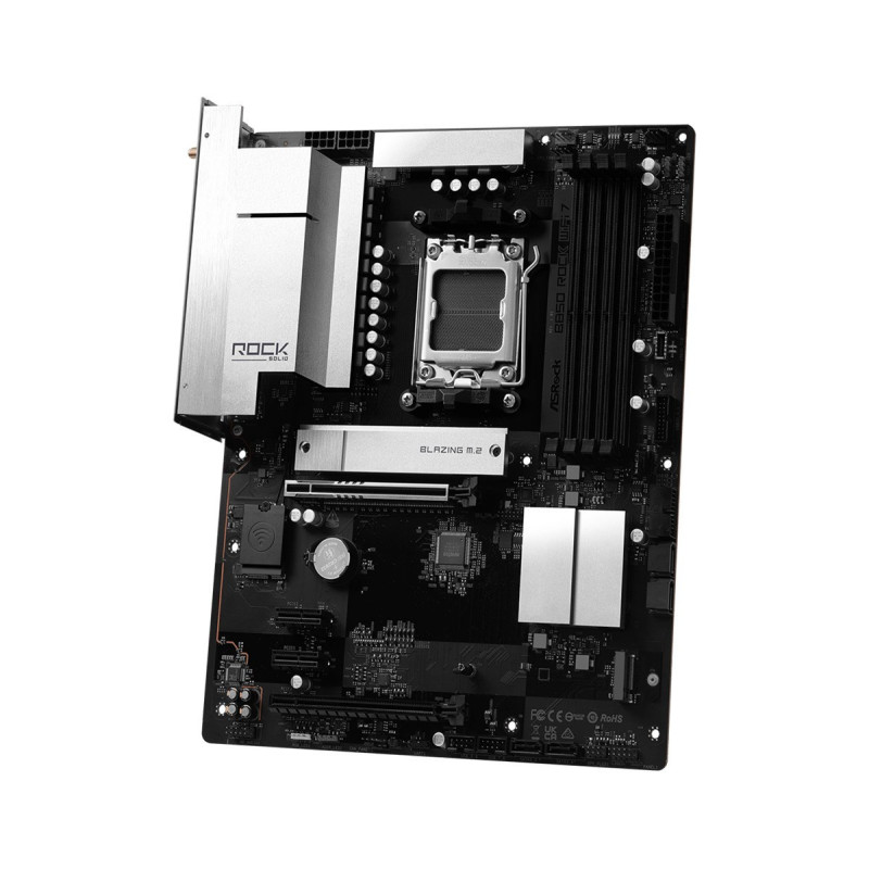 The Asrock B850 ROCK WIFI 7 motherboard supports AMD Ryzen 7000, 8000 and 9000 series processors with Socket AM5. It features dual-channel DDR5 memory support, a maximum memory capacity of 256 GB, and integrated Wi-Fi 6E connectivity.