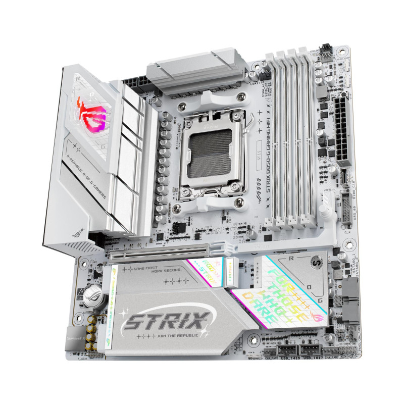 ASUS ROG Strix B850-G Gaming WiFi AMD mATX motherboard, 14+2+1 power stages, DDR5 slots, four M.2 slots, PCIe® 5.0, WiFi 7, USB 20Gbps Type-C® and Aura Sync RGB