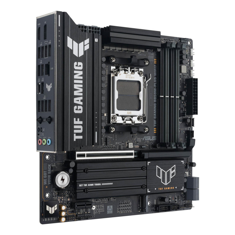 ASUS TUF GAMING B850M-PLUS WIFI7 takes all the essential elements of the latest AMD Ryzen™ processors and combines them with game-ready features and proven durability. Engineered with military-grade components, an upgraded power solution and a comprehensive cooling system, this motherboard goes beyond expectations with rock-solid and stable performance for marathon gaming. TUF GAMING motherboards also undergo rigorous endurance testing to ensure that they can handle conditions where others may fail. This platform delivers the power and connectivity that advanced AI PC applications demand.