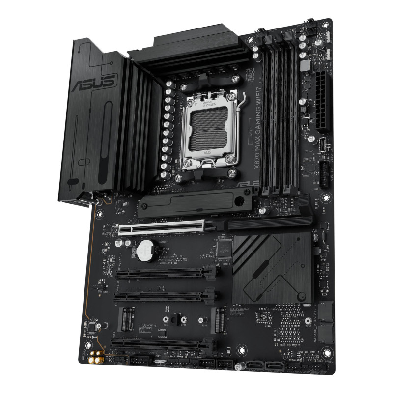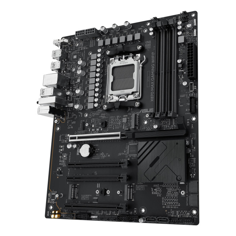 ASUS X870 series motherboards are expertly engineered to unleash the full potential of AMD Ryzen™ 9000 series processors. Boasting a robust power design, comprehensive cooling solutions and intelligent tuning options, the X870 MAX GAMING WIFI7 motherboard provides users and PC DIY builders with a range of performance optimizations via intuitive software and firmware features. It's designed to be Advanced AI PC-ready, offering the power and connectivity needed for demanding AI applications.