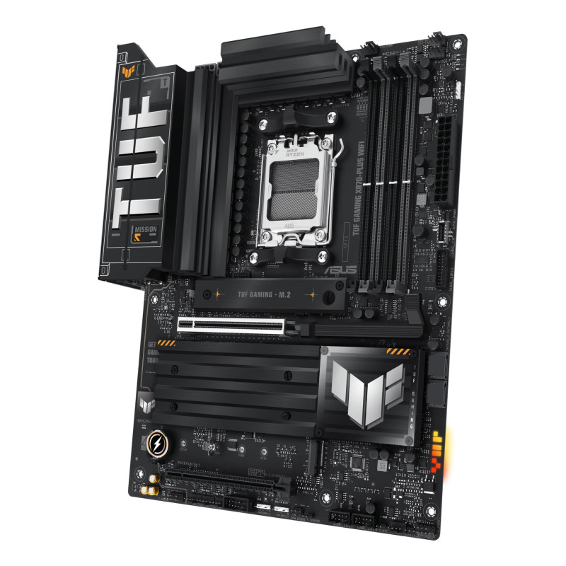 ASUS TUF GAMING X870-PLUS WIFI takes all the essential elements of the latest AMD Ryzen™ processors and combines them with game-ready features and proven durability. Engineered with military-grade components, an upgraded power solution and a comprehensive cooling system, this motherboard goes beyond expectations with rock-solid and stable performance for marathon gaming. TUF GAMING motherboards also undergo rigorous endurance testing to ensure that they can handle conditions where others may fail. This platform delivers the power and connectivity that advanced AI PC applications demand.