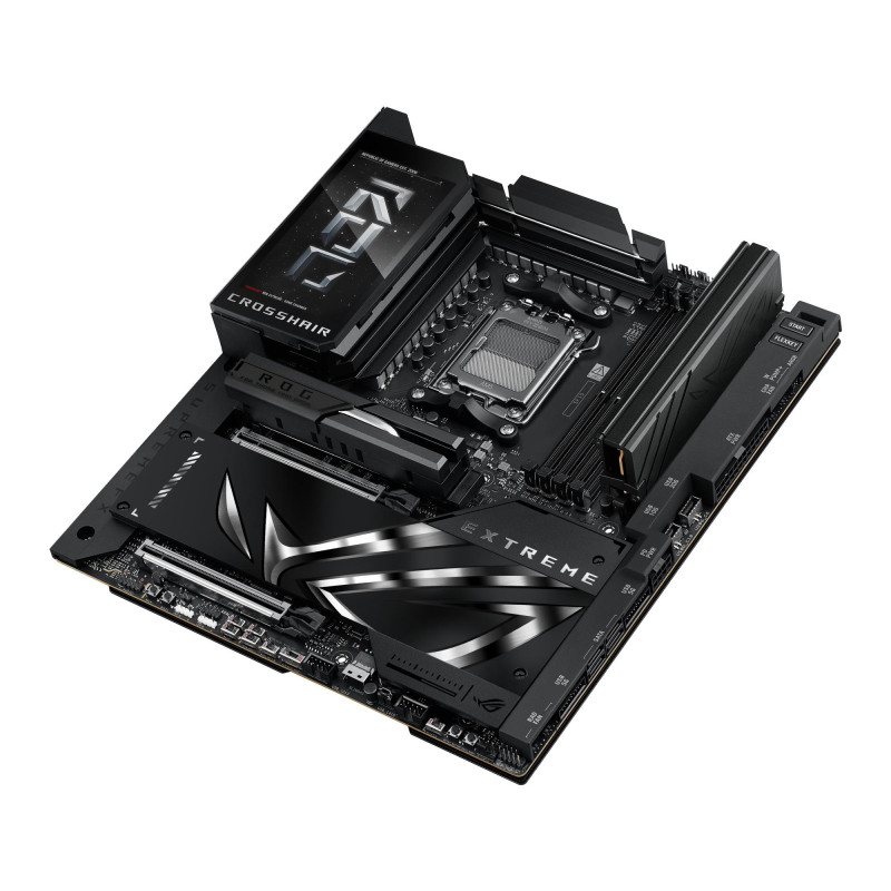 The ROG Crosshair X870E Extreme is the flagship AMD Ryzen™ 9000 series motherboard, designed for the most discerning users. It provides the ultimate foundation for AM5 CPUs, DDR5 memory, and PCIe® 5.0 components to ensure maximum performance and future-readiness. Its comprehensive connectivity includes USB4®, and the integrated 5-inch LCD offers a unique way to monitor system performance or add a touch of personalized style.