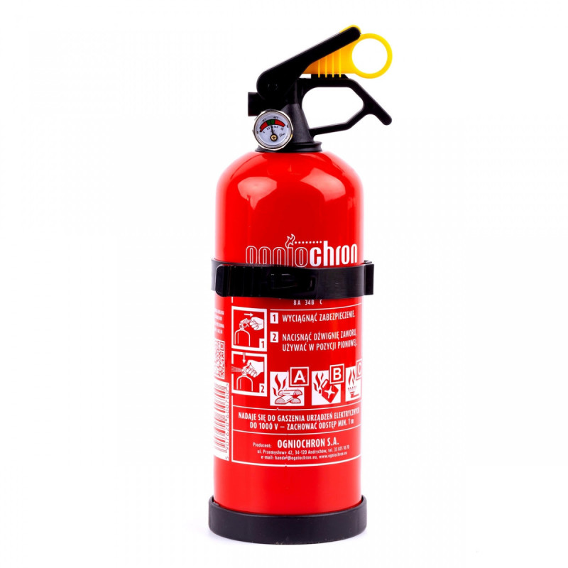 ABC powder fire extinguisher with pressure gauge and hanger, 1 kg