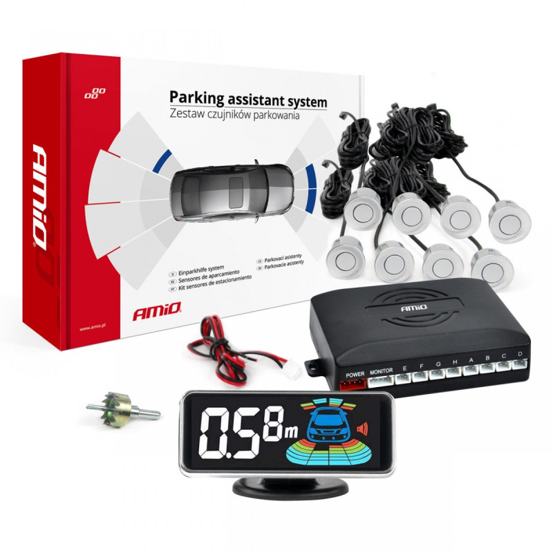 Reversing parking sensors silver front rear LED 3D AMIO-03193