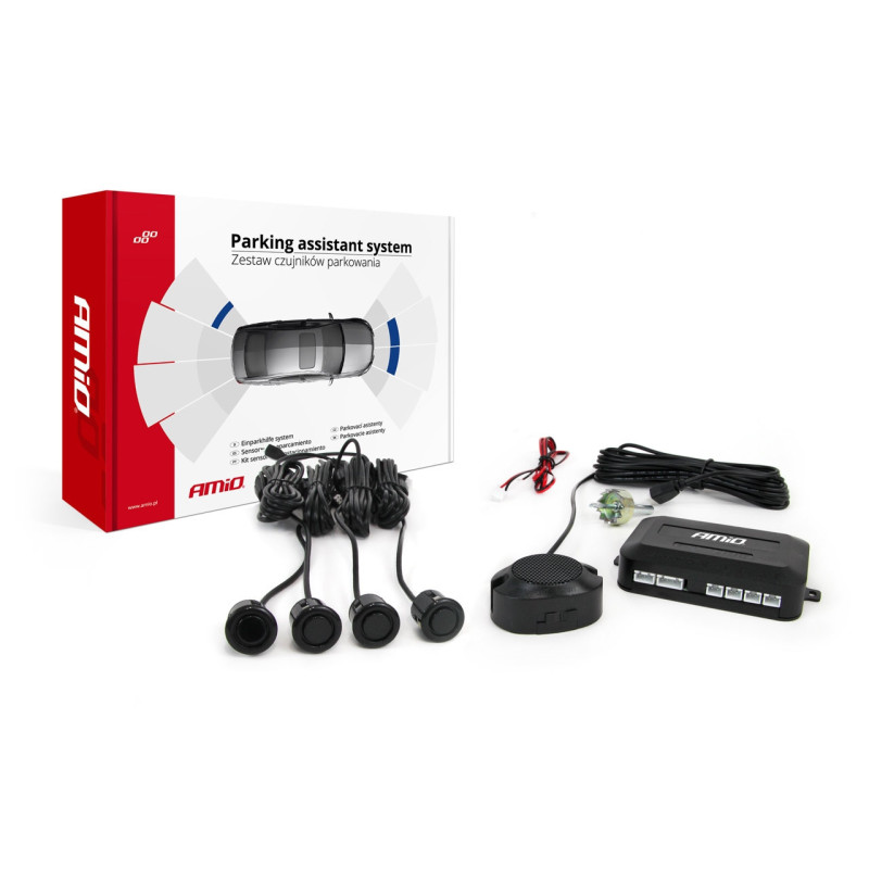 Buzzer reverse parking sensor kit, 4 sensors, black, AMIO-01567