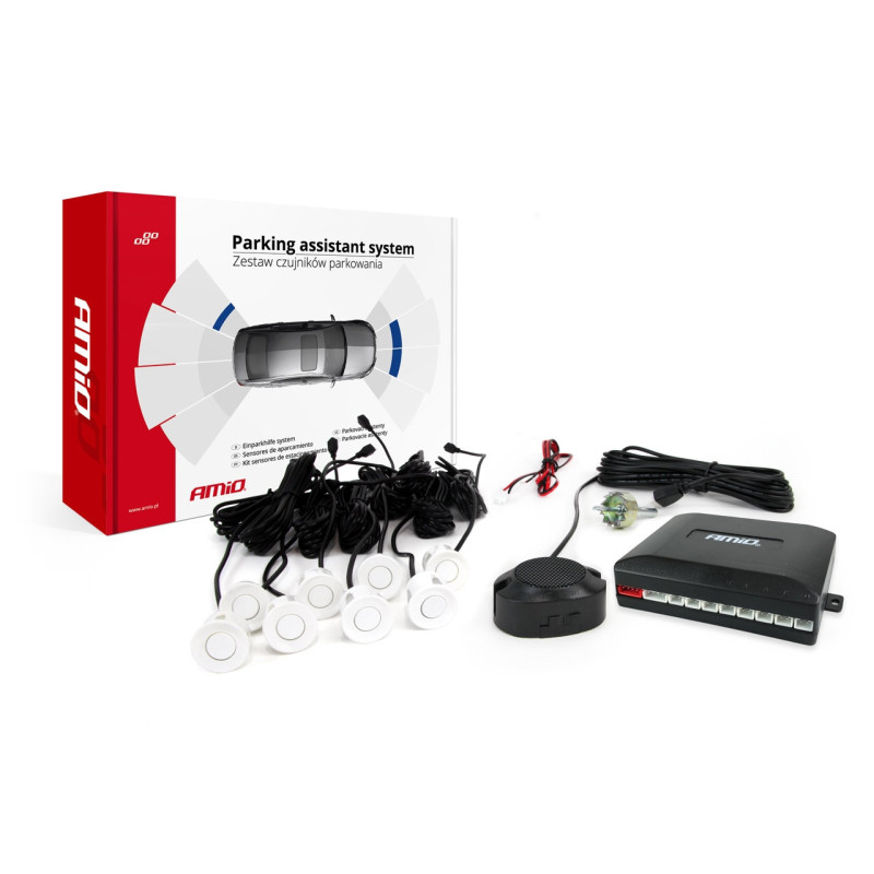 Buzzer reverse parking sensor kit 8 sensors white AMIO-01599
