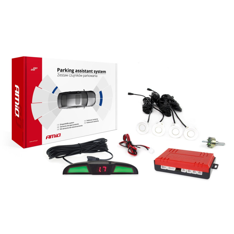 LED COB reverse parking sensor kit, 4 white sensors AMIO-02283