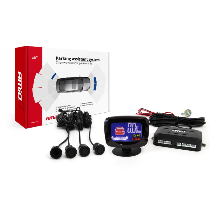Parking sensor kit, LED reversing sensors GRAF, 4 sensors, black AMIO-01562