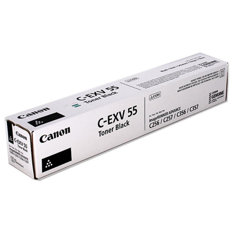 The Canon C-EXV CEXV 55 toner cartridge is black in color and has a yield ranging from 9,750 to 23,700 pages. It is an original product with dimensions of 440 x 75 x 70 mm.