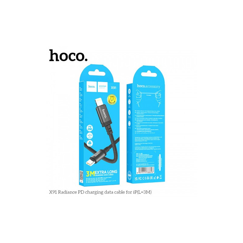 USB Cable Hoco 'X91' black 'Type-C / Lightning' 300cm up to 20W (adapted for Apple iPhone)